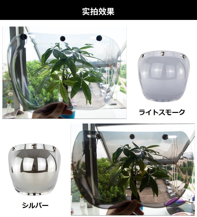 バイク ヘルメット ジェットヘルメット シールド 【バブルシールド + フリップアップセット】 3点ボタン式 激安特価【ライトスモーク】 | dreamjaopan店